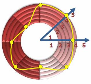 Kérlek, rajzolj egy kört papírra! Ennek a körnek rajzolj nyolc küllőt! Ezeken a küllőkön kérlek, jelöld be, egy 1-től 5-ig tartó skálán, belülről kifelé emelkedően, mit érzel, milyen szinten sikerül életedben megvalósítani a következő dolgokat. Légyszi, írd ide a szerinted igaznak érzett számot a kérdések után!